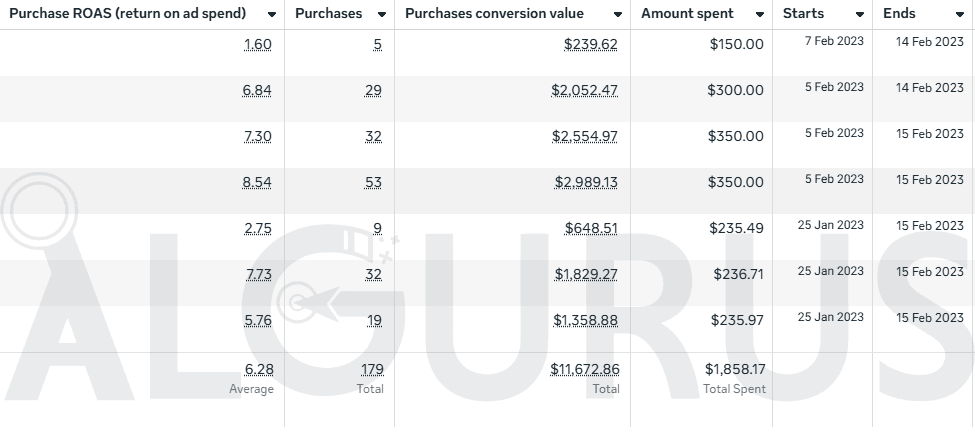 ROAS | 6.28 | 4-6 | 5-57% Higher |
